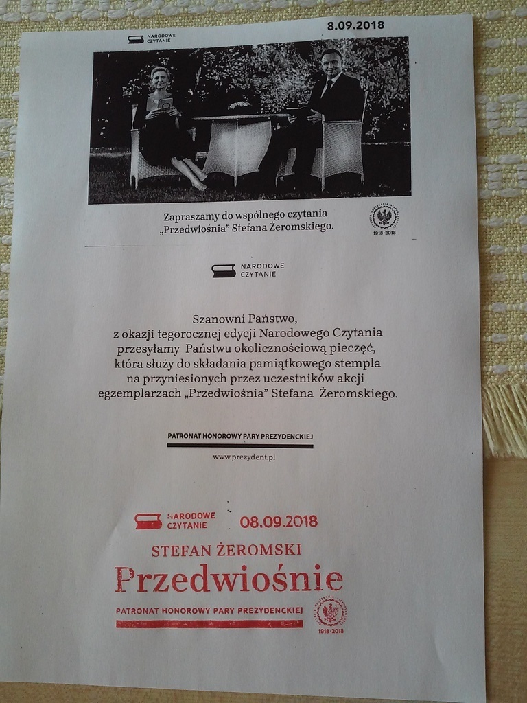 W roku świętowania 100-lecia odzyskania niepodległości Polski nauczyciele naszej szkoły wzięli udział w Narodowym Czytaniu. W tym roku czytaliśmy głośno „Przedwiośnie” Stefana Żeromskiego.