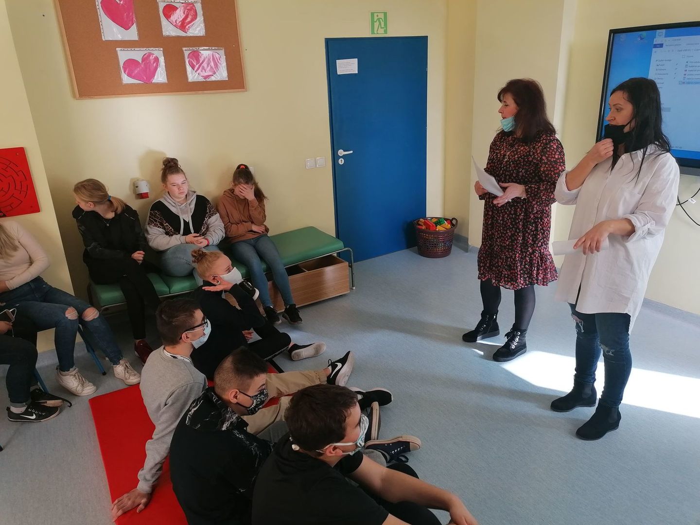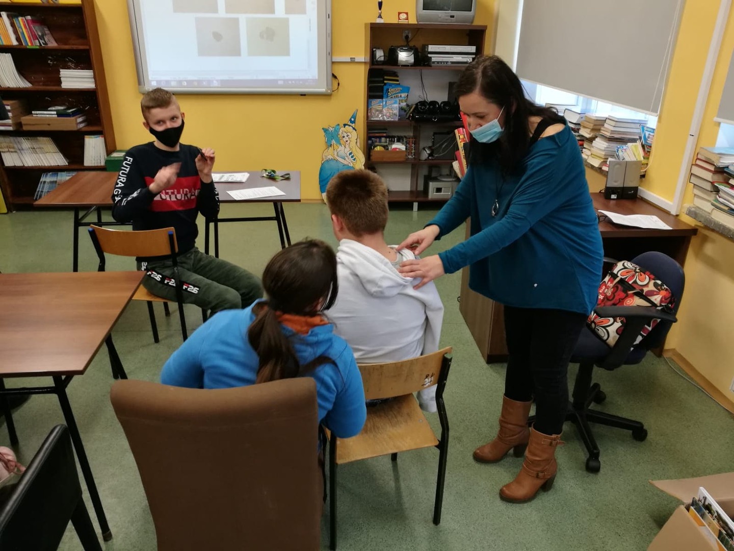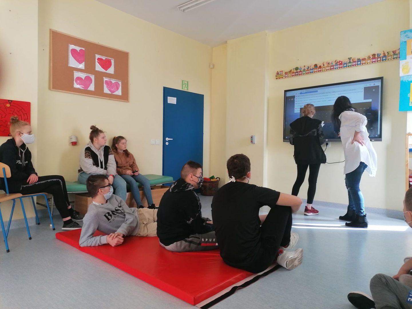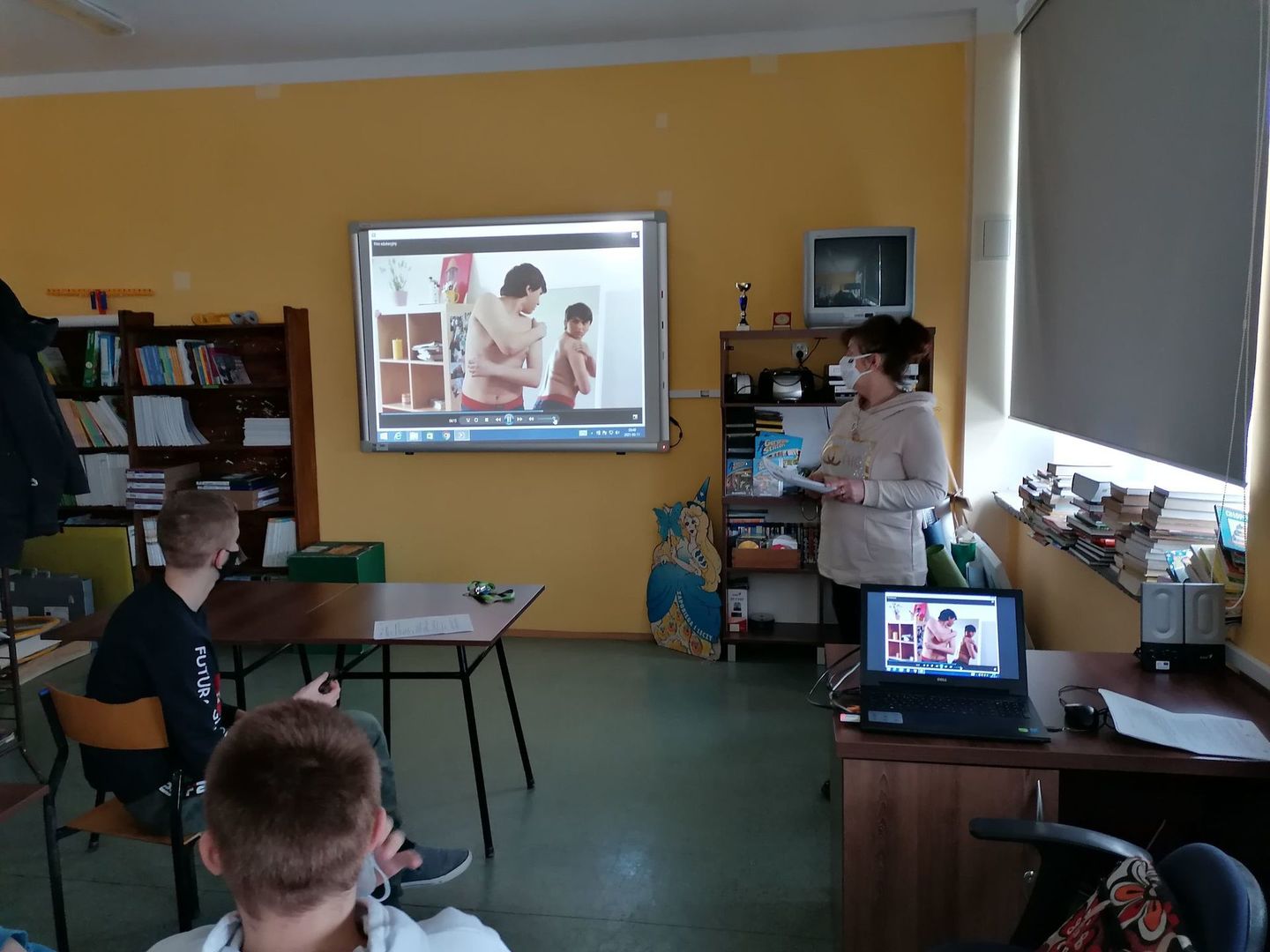 W ramach udziału w powyższym programie, w okresie od stycznia do marca 2021r., zostały przeprowadzone zajęcia lekcyjne w klasach 7a i 8a. Uczniowie podczas prelekcji prowadzonych przez panią A. Drzewiecką oraz panią M. Juszczyk zapoznali się z podstawowymi zagadnieniami dotyczącymi chorób skóry tzw. „ABCDE czerniaka”. Dzieci nauczyły się, jak przeprowadzić samobadanie skóry i rozróżnić zmianę nowotworową od zwykłego znamiona. Zapoznały się także z ilustracjami obrazującymi zmiany skórne, obejrzały film edukacyjny „Znamię! Znam je?”. Młodzież aktywnie i z zaangażowaniem uczestniczyła w zajęciach.