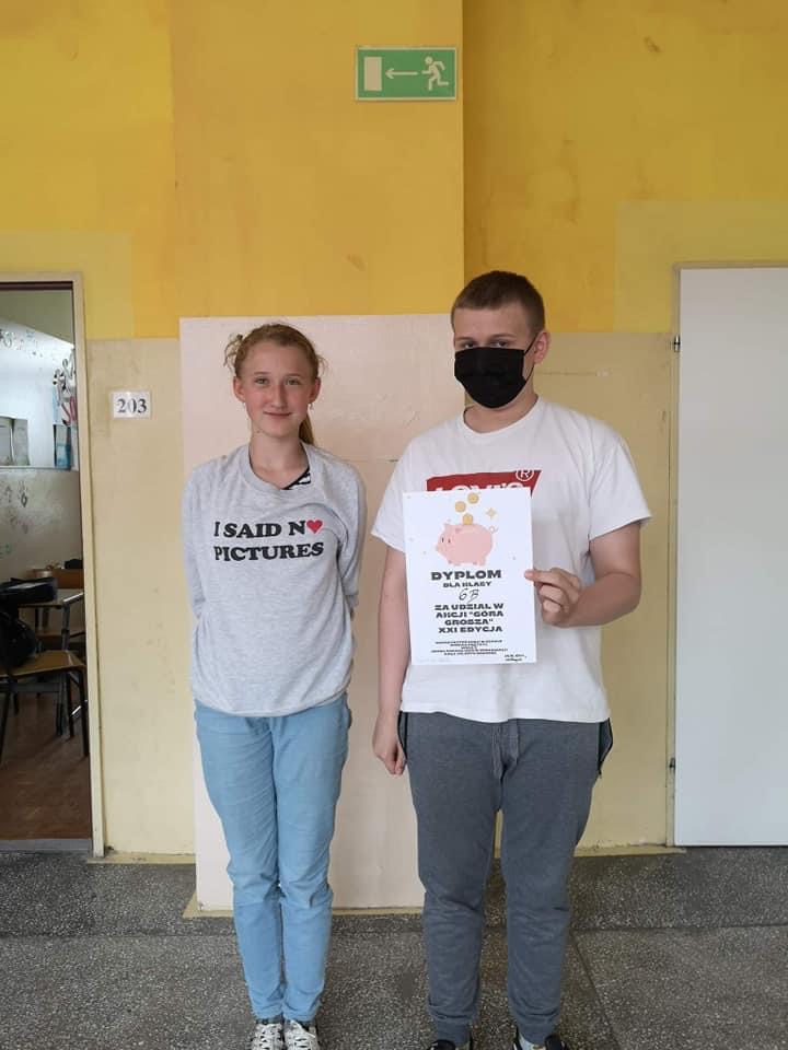 Każda klasa otrzymała dyplom za uczestnictwo w akcji "Góra Grosza".