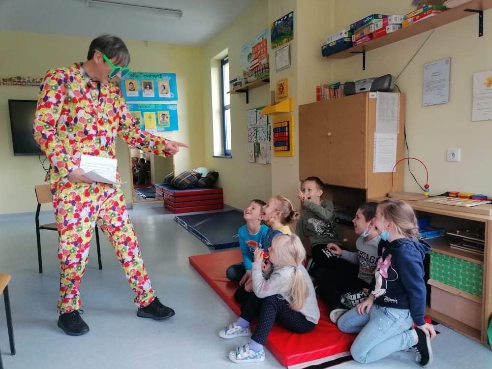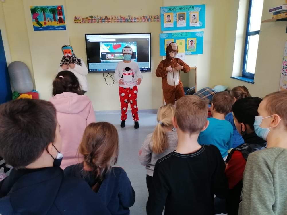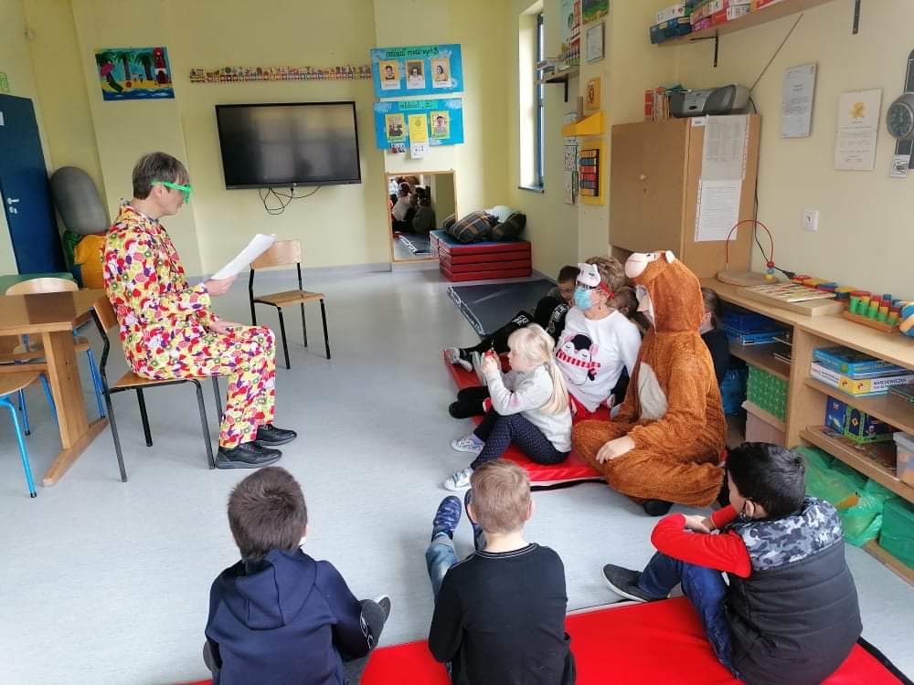 W tym roku MISIE z okazji swojego święta przybyły do naszych najmłodszych uczniów z ważnym, ekologicznym przekazem. Misie i dzieci porozmawiały sobie na temat globalnych problemów, które zagrażają życiu ludzi, roślin i zwierząt. Zastanawiano się, jak dzieci mogą przyczynić się do ochrony środowiska. Zagrano w gry, których zadaniem było odnalezienie i posegregowanie śmieci do odpowiednich pojemników. Posłuchano ciekawego opowiadania związanego z ekologią, które odczytał pan Piotr Fukiet w ramach akcji Cała Polska Czyta Dzieciom. Wykonano wspólny portret misia i nazwano go MIŚ KLASUŚ. Pluszaki, w rolę których wcielili się nauczyciele, otrzymali od każdego ucznia laurkę z życzeniami. Dzieci bawiły się przy „misiowych” piosenkach i rozwiązywały zagadki.
