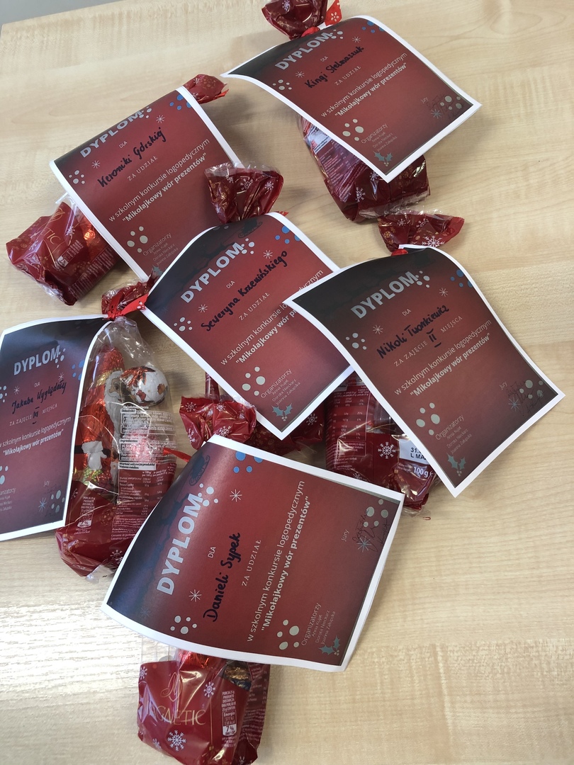 Szkolny konkurs logopedyczny „Mikołajkowy wór prezentów”