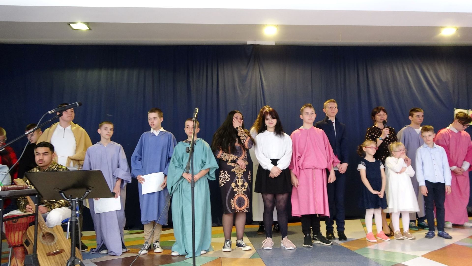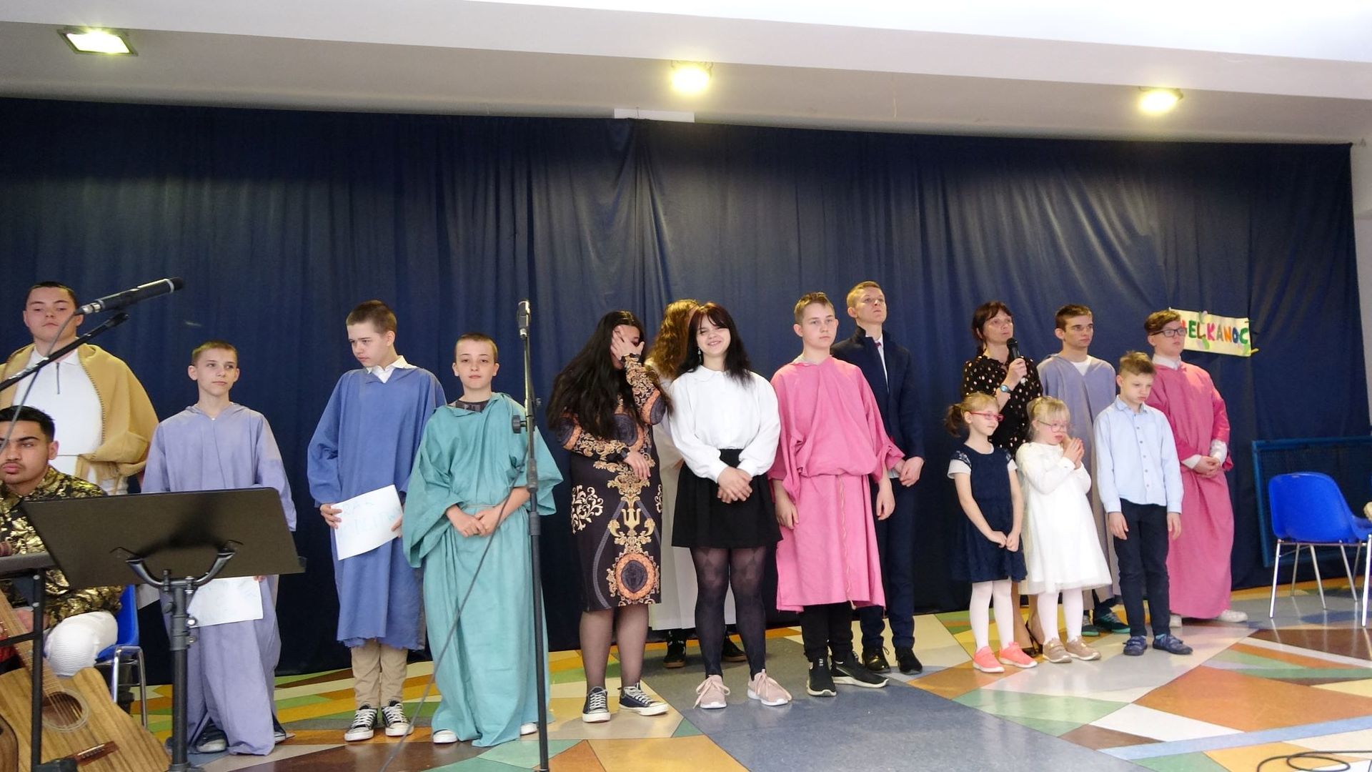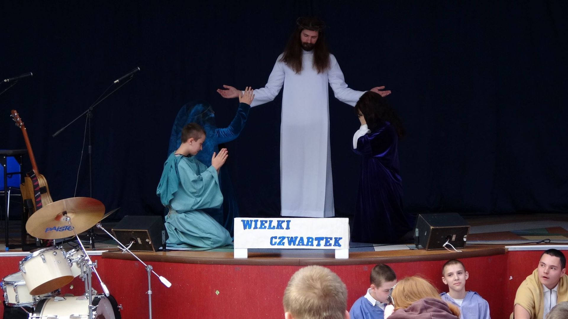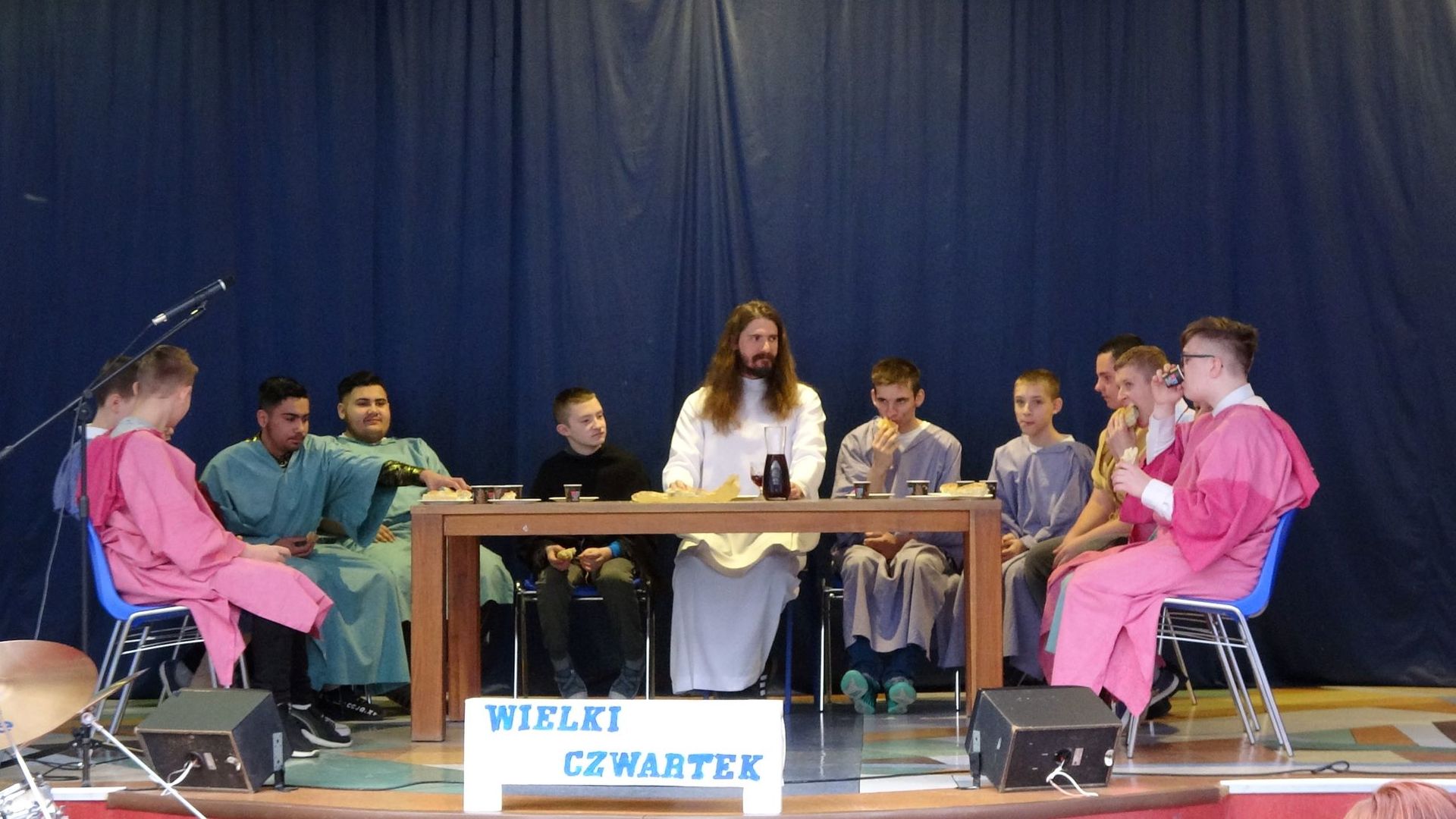 W ostatni dzień przed przerwą świąteczną wzięliśmy udział w uroczystym apelu z okazji Wielkanocy. Pod opieką pani katechetki, Anny Majewskiej, uczniowie przygotowali bardzo interesujące i proste w przekazie widowisko. Dowiedzieliśmy się, czym jest Triduum Paschalne. Przypomniano nam, na czym polega celebracja misterium paschalnego: męki, śmierci oraz zmartwychwstania Jezusa Chrystusa. Wielki Czwartek, Wielka Sobota, Niedziela Wielkanocna i Lany Poniedziałek to odrębne sceny w spektaklu. Towarzyszyła im nastrojowa muzyka, mieliśmy także okazję posłuchać występu szkolnego zespołu muzycznego.