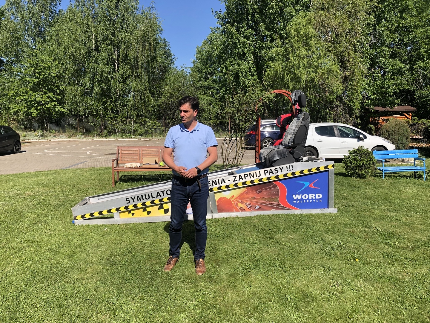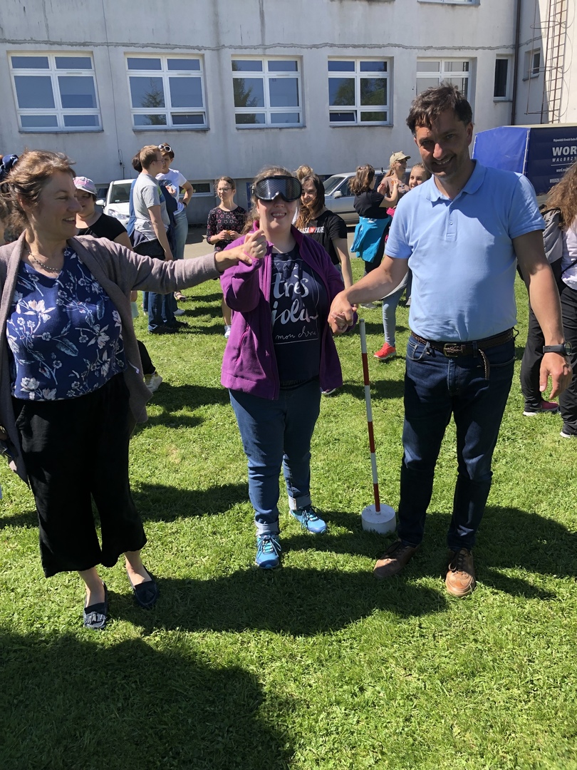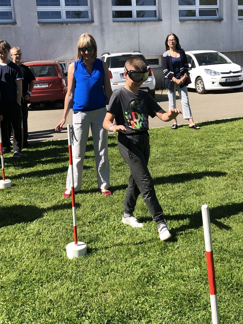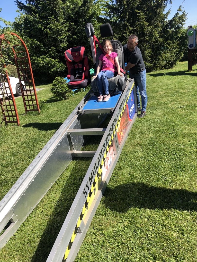 W czwartek 19 maja, dzięki uprzejmości i zaangażowaniu pana Mariusza Szmiela, dyrektora Wojewódzkiego Ośrodka Ruchu Drogowego w Wałbrzychu, nasi uczniowie mogli doświadczyć nietypowych wrażeń. Mieli okazję pokonać krótki tor przeszkód w NARKOgoglach, które symulują stan po zażyciu narkotyków. Mogli także przymierzyć ALKOgogle, które przybliżają postrzeganie rzeczywistości do tego po spożyciu większej ilości alkoholu. Uczniowie byli zaskoczeni faktem, że tak trudno poruszać się po spożyciu alkoholu i narkotyków. Miejmy nadzieję, że po takiej lekcji bedą w przyszłości unikali tych szkodliwych używek. Kolejną atrakcją był symulator zderzeń. Chętni uczniowie mogli zasiąść w fotelu samochodowym i doznać wrażeń zbliżonych do zderzenia w wypadku samochodowym. Na przykładzie pluszowego misia zobaczyli, co się dzieje, gdy podczas wypadku nie mamy zapiętych pasów. Wszyscy zgodnie przyznali, że to bardzo niebezpieczne i obiecali zawsze zapinać pasy, nawet podczas krótkiej przejażdżki. Na zakończenie spotkania wszyscy otrzymali odblaskowe zawieszki, dzięki którym bedą bardziej widoczni na drogach.