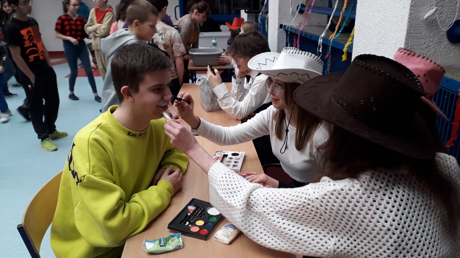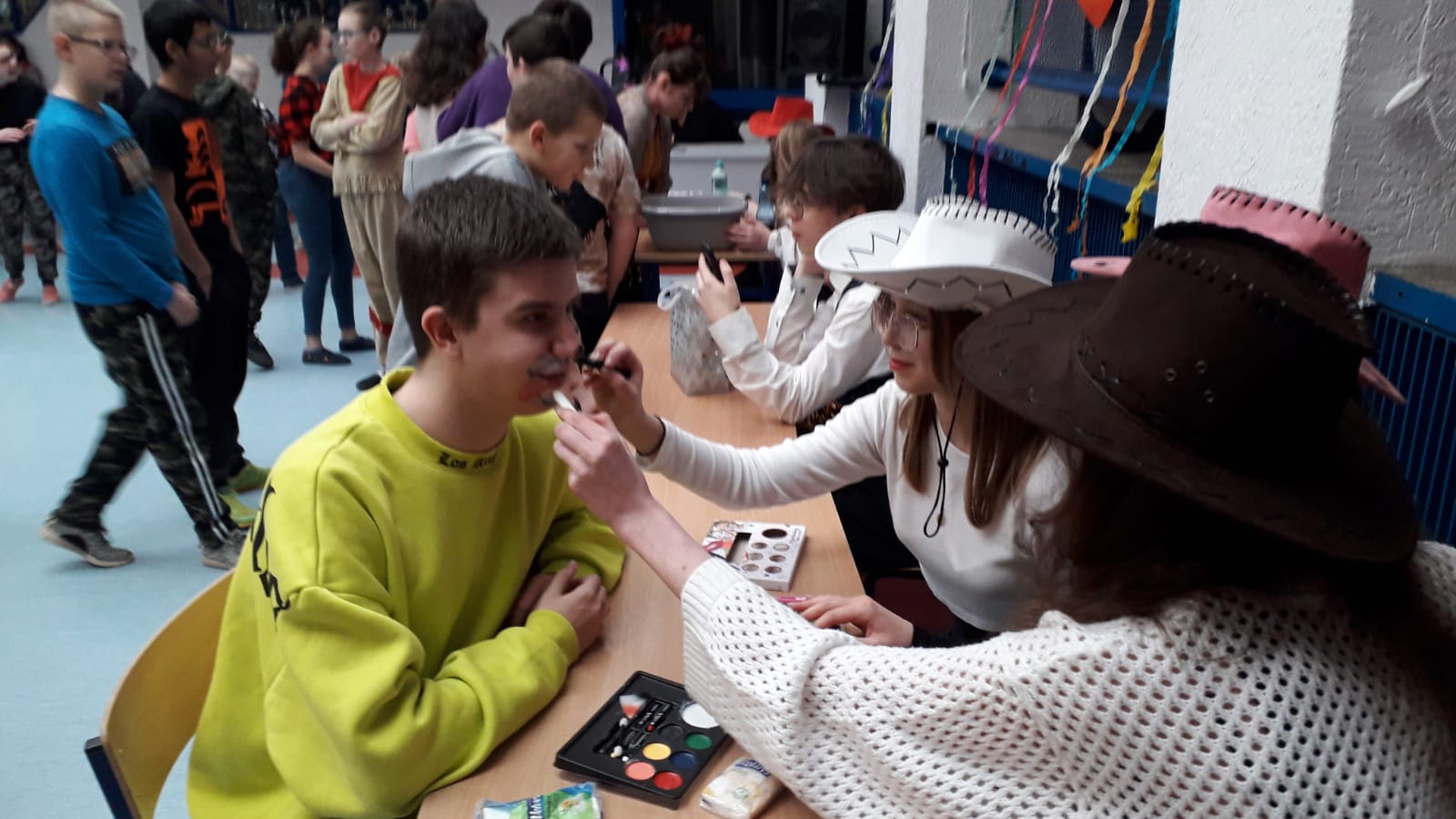W piątek 3 lutego naszą szkołę odwiedzili uczniowie Szkoły Podstawowej Fundacji „Clever”, którzy przygotowali zabawę karnawałową. Były tańce, malowanie twarzy i robienie tatuażów oraz ciekawe zagadki. Wszyscy świetnie się bawili.