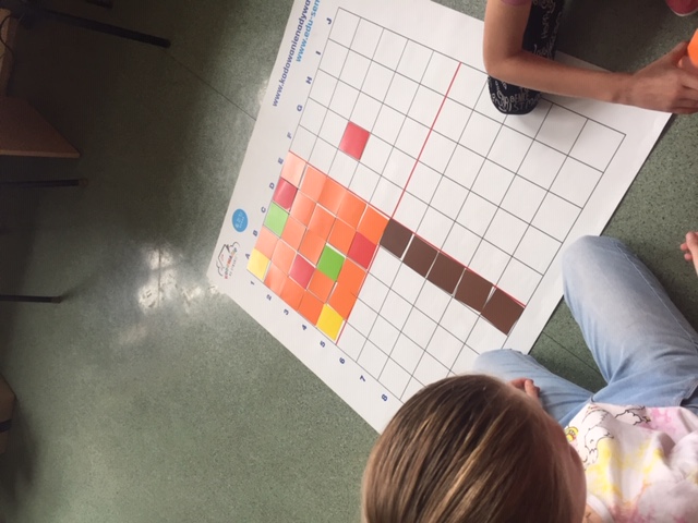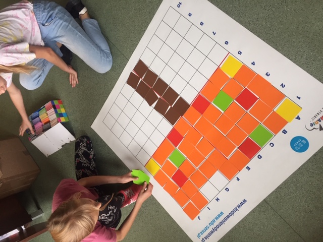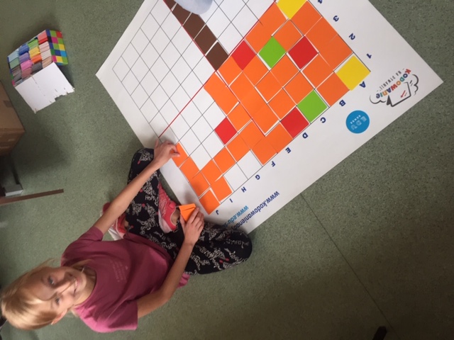 Na lekcjach informatyki realizowali zaplanowane wydarzenia dotyczące: programowania offline z wykorzystaniem maty do kodowania oraz pracowali z wirtualną matą układając zakodowane wiersze.
