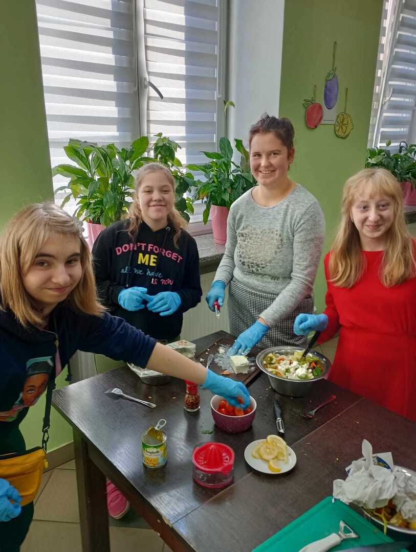 Dodatkowo wybrana grupa uczennic naszej szkoły brała udział w konkursie "Żyj zdrowo kolorowo". Dziewczyny własnoręcznie wykonały mega zdrową i pyszną sałatkę polsko-grecką i zdobyły nagrodę.