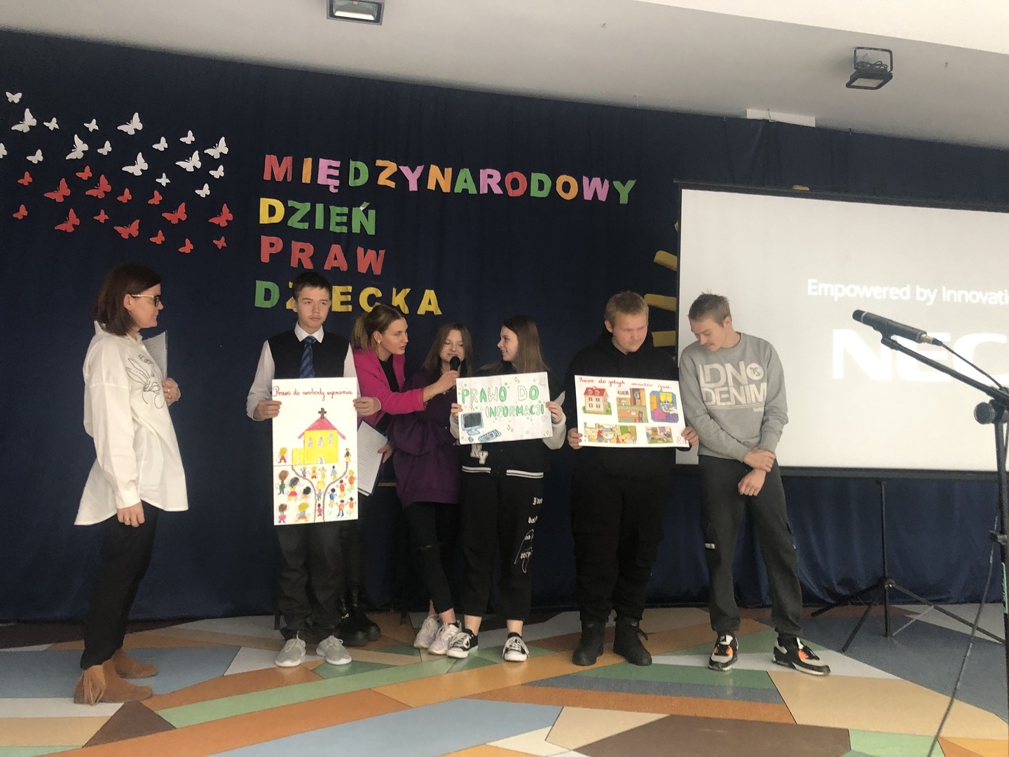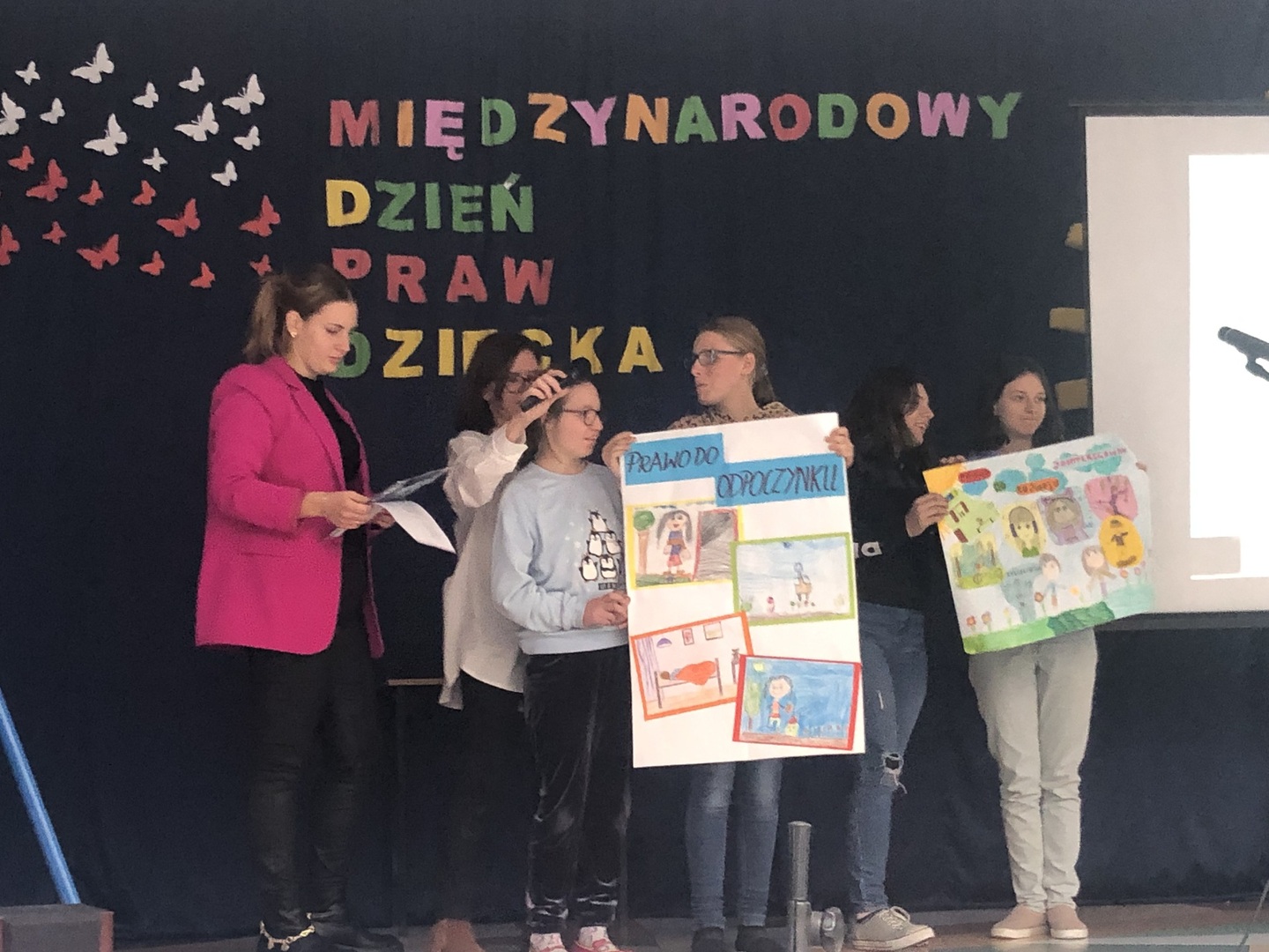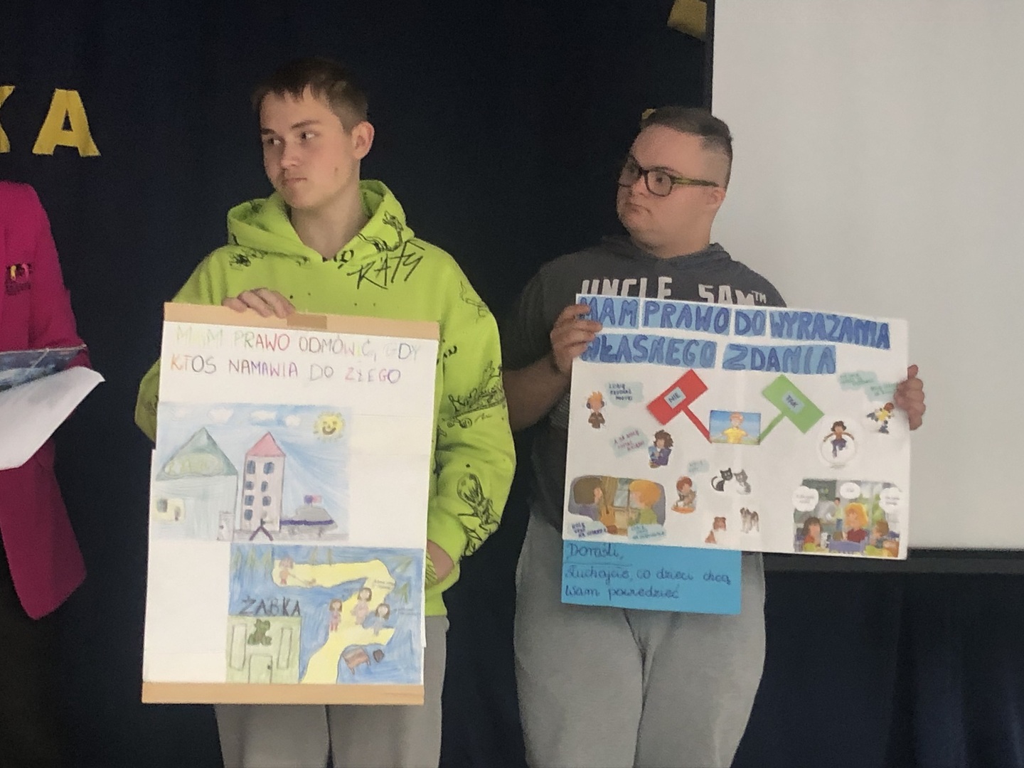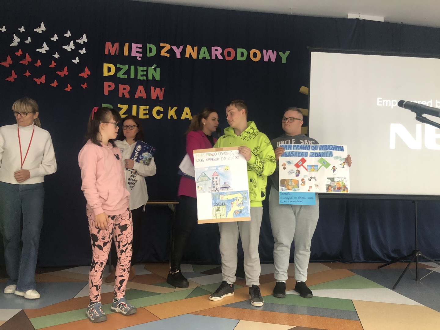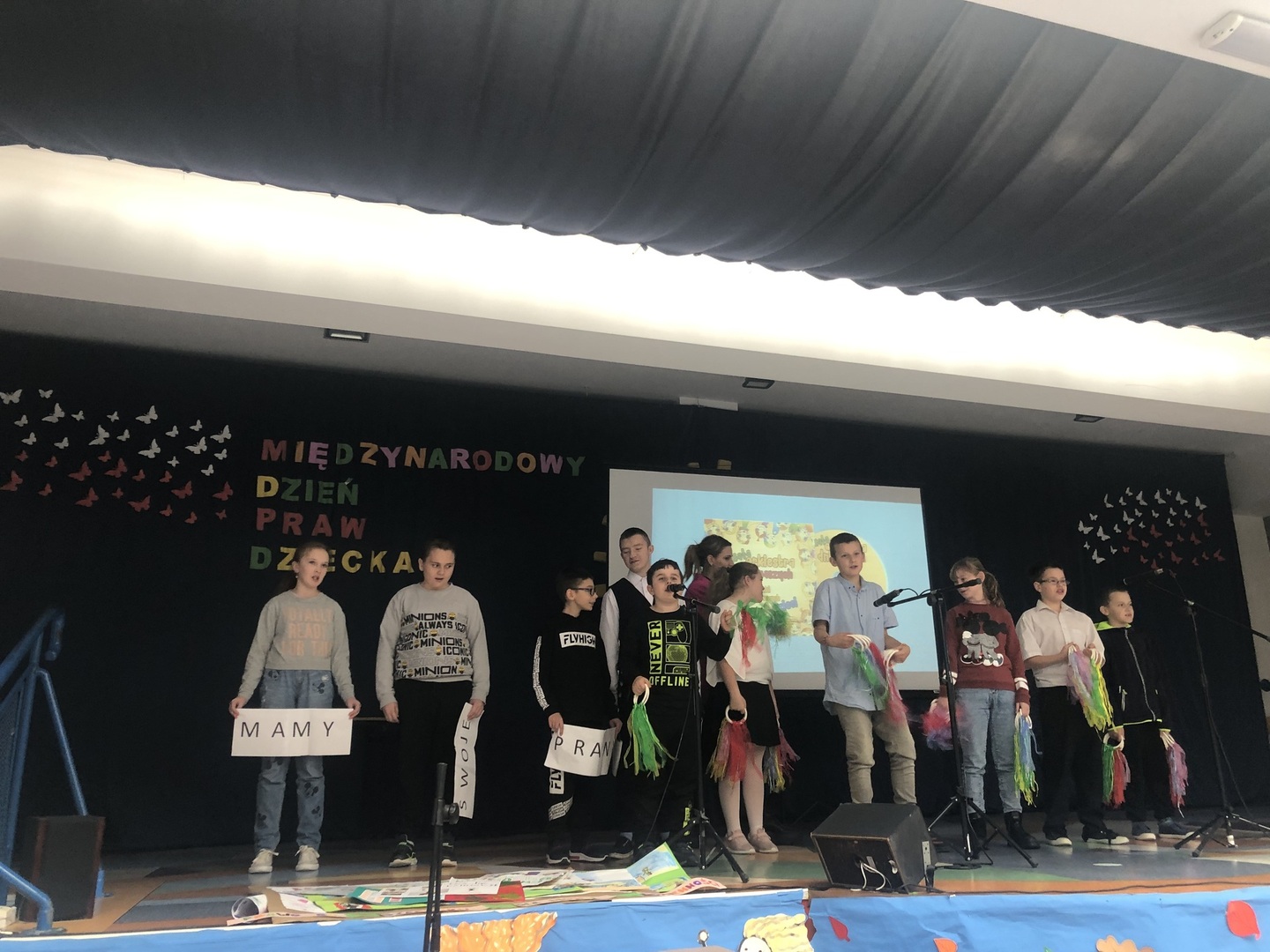 20 listopada przypadał Międzynarodowy Dzień Praw Dziecka. Dzisiaj na szkolnej auli odbył się z tej okazji apel. Była to dobra okazja, aby w sposób pozytywny i radosny uświadamiać wszystkim, że prawa dziecka są ważne i każde dziecko powinno móc z nich korzystać. Każda klasa miała za zadanie przedstawić na plakacie wybrane prawo dziecka. Wszystkie prace były ciekawe. Po apelu bedą zdobić naszą aulę, aby uczniowie z wychowawcami zapoznali się z nimi dokładniej.