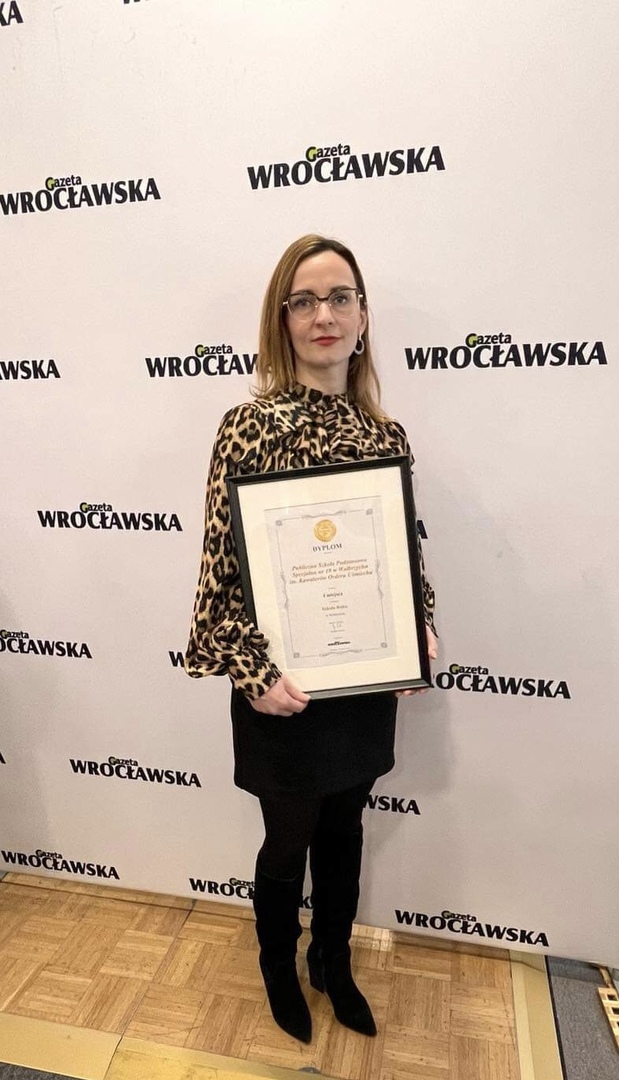 W środę 31 stycznia pani wicedyrektor Joanna Załupska wzięła udział w uroczystej gali Plebiscytu Edukacyjnego Gazety Wrocławskiej. Odebrała tam dyplom dla naszej szkoły za zajęcie I miejsca w kategorii „Szkoła Roku” dla placówki edukacyjnej przyjaznej uczniom i ich rodzicom w powiecie wałbrzyskim. Dziękujemy za wszystkie oddane głosy na naszą szkołę!