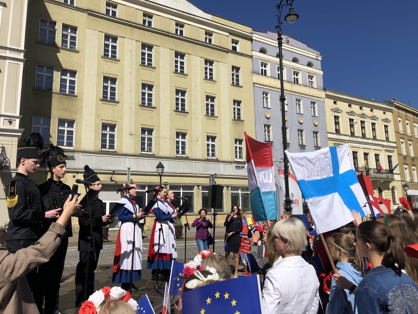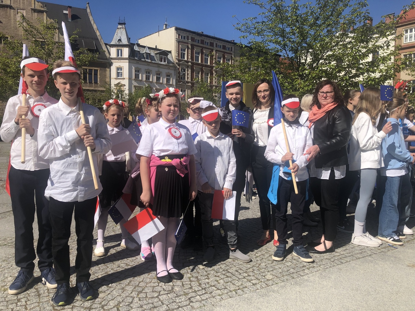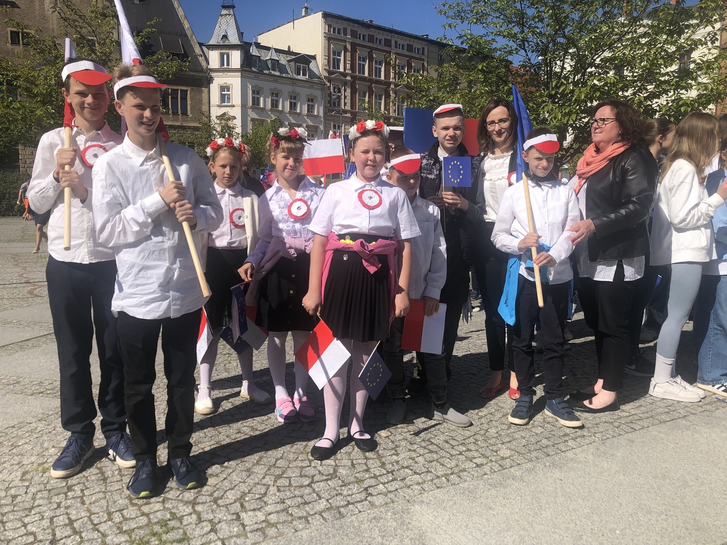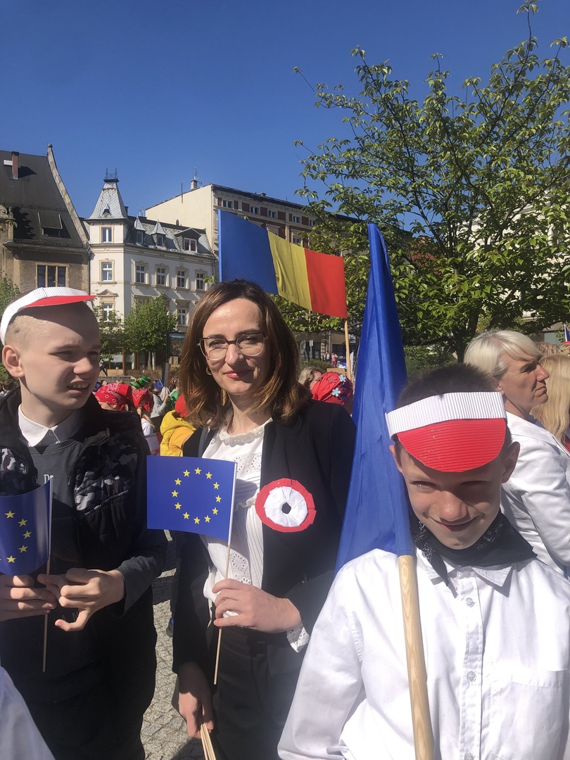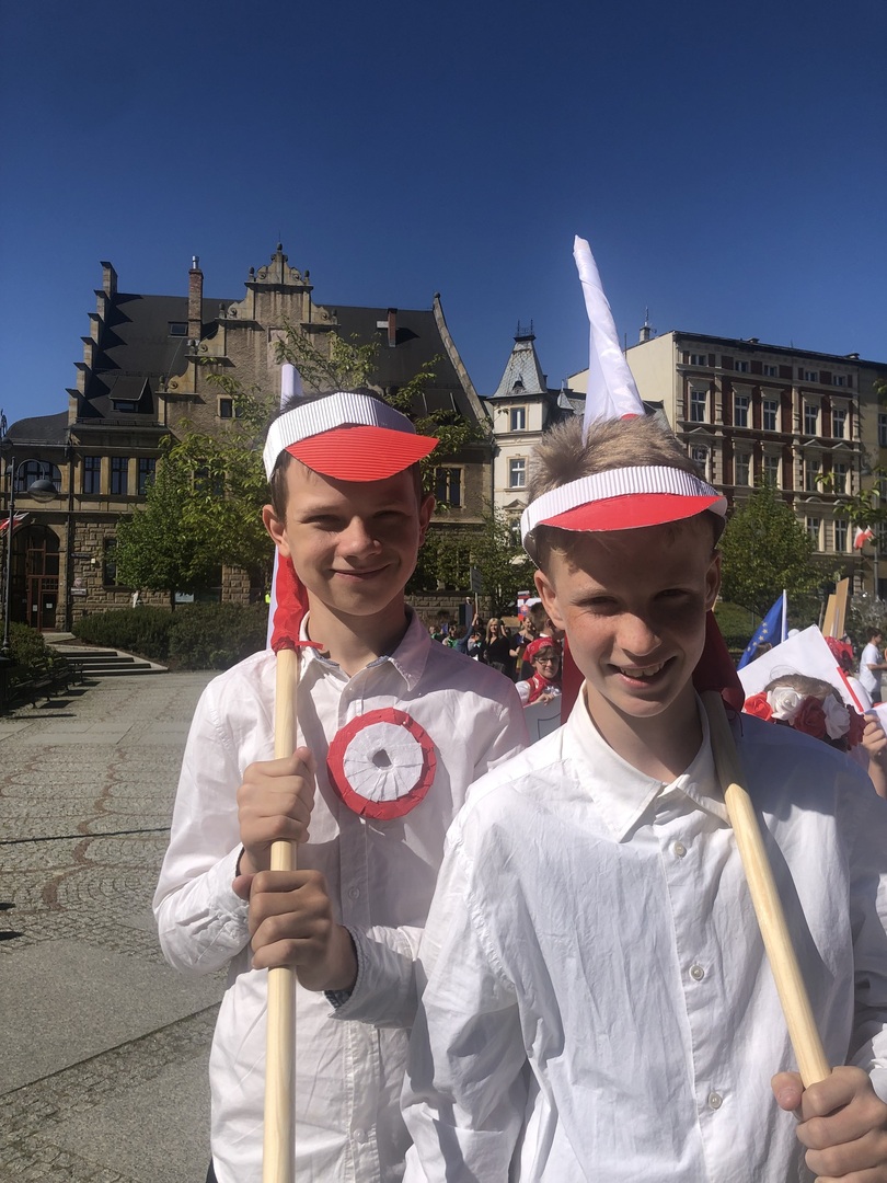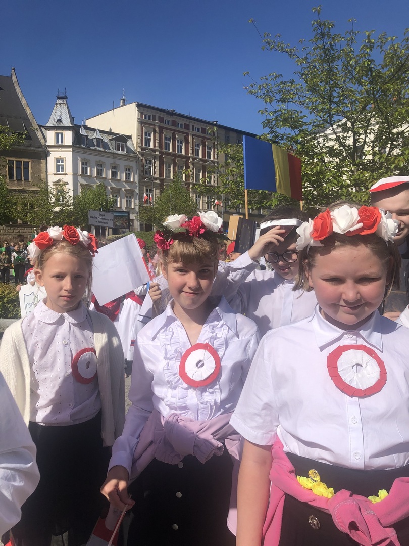 Dziś 9 maja reprezentacja naszej szkoły wzięła udział w wałbrzyskich obchodach Dnia Europy. Jako Polska przewodziliśmy barwnemu korowodowi składającemu się z krajów członkowskich Unii. Towarzyszyła nam pani prezydent Anna Elżbieciak-Stec. Każda szkola miała przydzielone inne państwo. Spotkaliśmy się na Rynku, aby zamanifestować poparcie dla idei integracji, współpracy i zbliżenia narodów.
