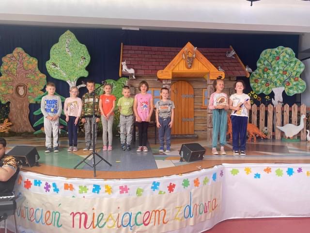 Kluczowym elementem naszego programu były działania związane z aktywnością fizyczną i edukacją zdrowotną. Zespół i uczniowie klasy trzeciej poprzez muzykę i zabawę przekazali przesłanie o znaczeniu zdrowia, inspirując innych do aktywności fizycznej. Uczniowie z klasy pierwszej zaś wykazali się wierszykiem o higienie jamy ustnej, podkreślając konieczność dbania o zdrowe nawyki.
