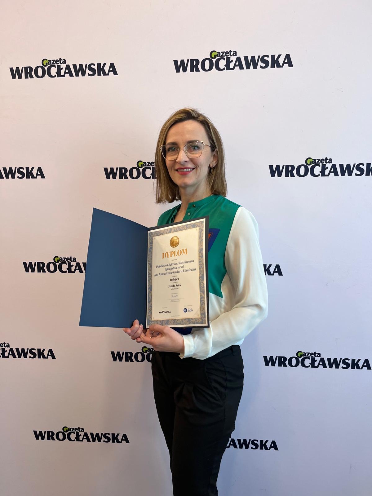 Dzisiaj we Wrocławiu pani wicedyrektor, Joanna Załupska, odebrała dyplom dla naszej szkoły za zajęcie I miejsca w Plebiscycie Edukacyjnym Gazety Wrocławskiej 2024 w kategorii placówka edukacyjna przyjazna uczniom i rodzicom. Bardzo się cieszymy z tego wyróżnienia - dziękujemy za zaufanie i oddane na nas głosy! 🏆