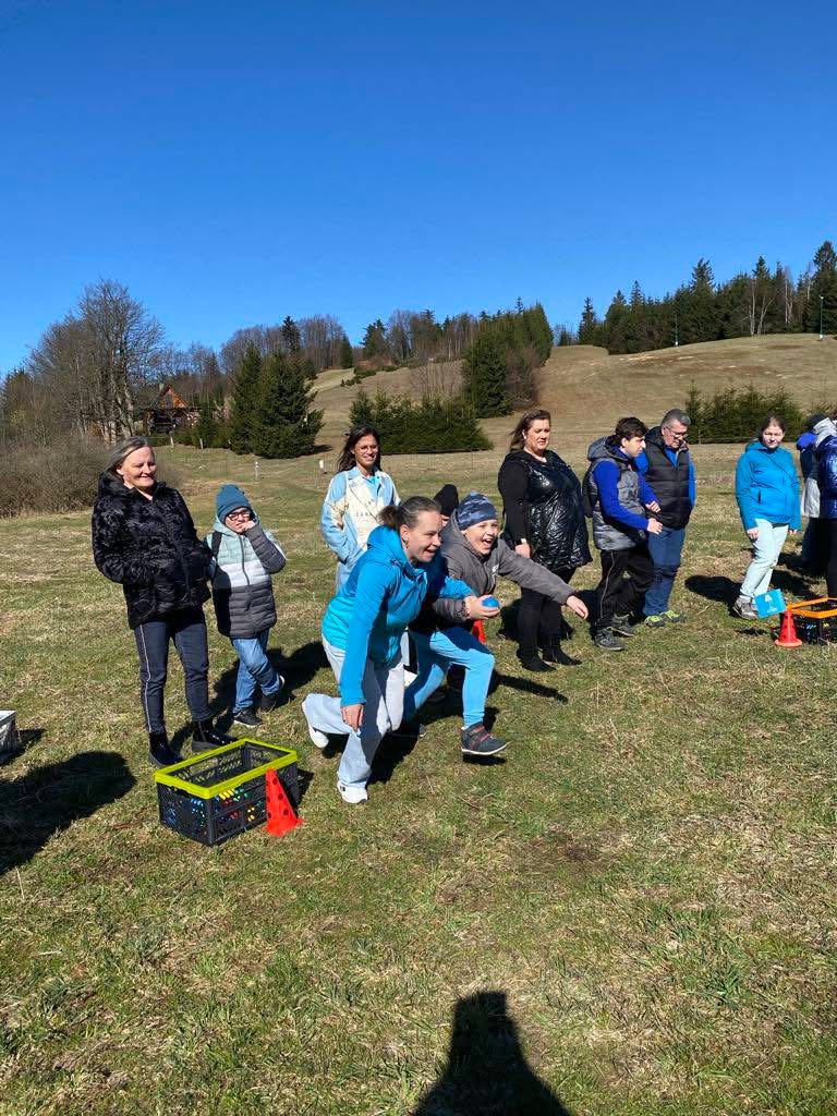3.04.2025 duża grupa uczniów z autyzmem wraz z rodzicami i nauczycielami wyjechała wspólnie spędzić czas na łonie natury w Andrzejówce. Imprezę rozpoczęły zawody sportowe pod hasłem: