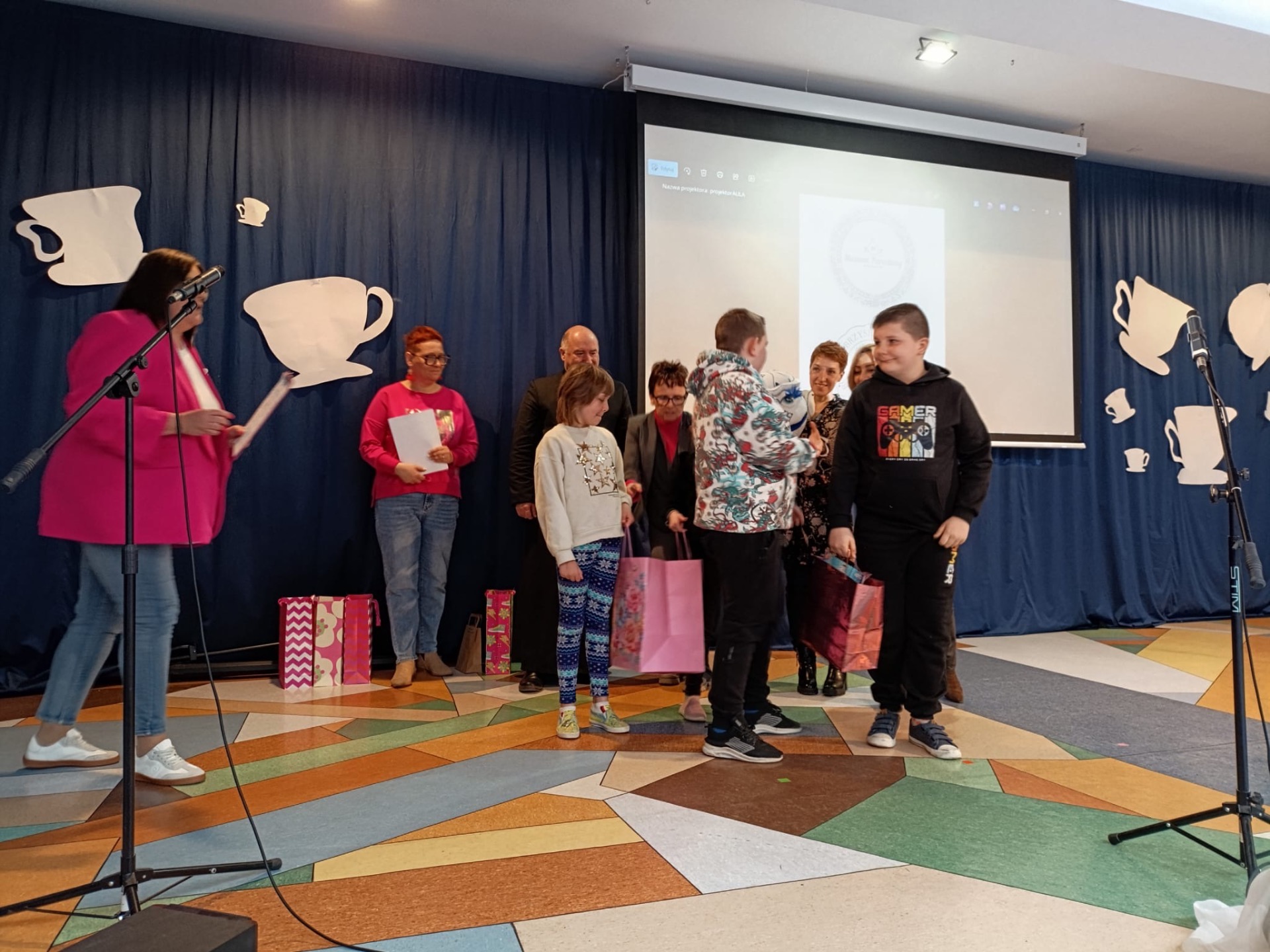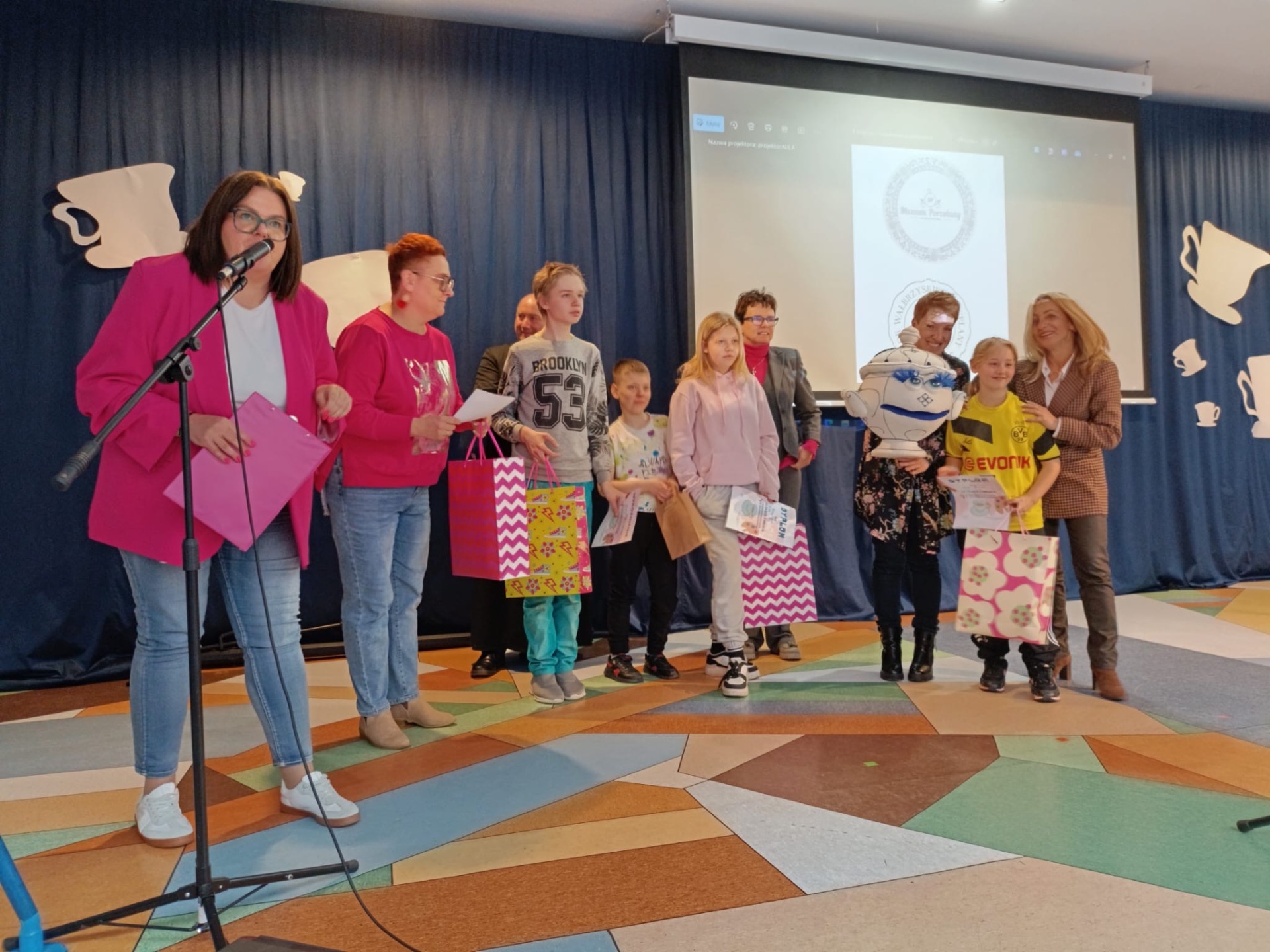 Dziś odbyło się uroczyste wręczenie nagród w szkolnym konkursie "Najpiękniejsza filiżanka", organizowanym w ramach Roku Wałbrzyskiej Porcelany. Gościli u nas: Pani Sylwia Bielawska, Pani Karolina z cudowną Fredzią z Muzeum Porcelany w Wałbrzychu oraz Ksiądz Witold.