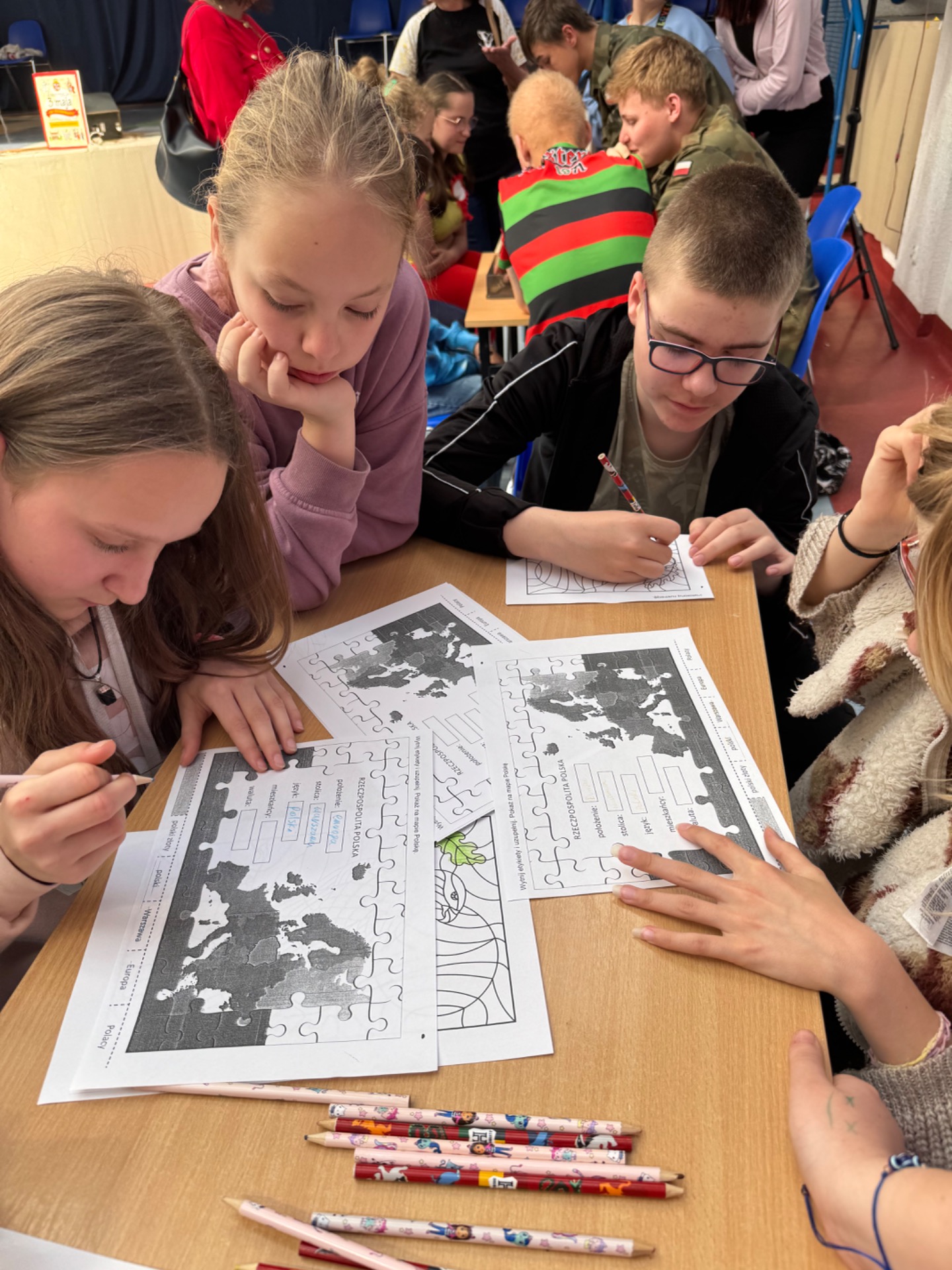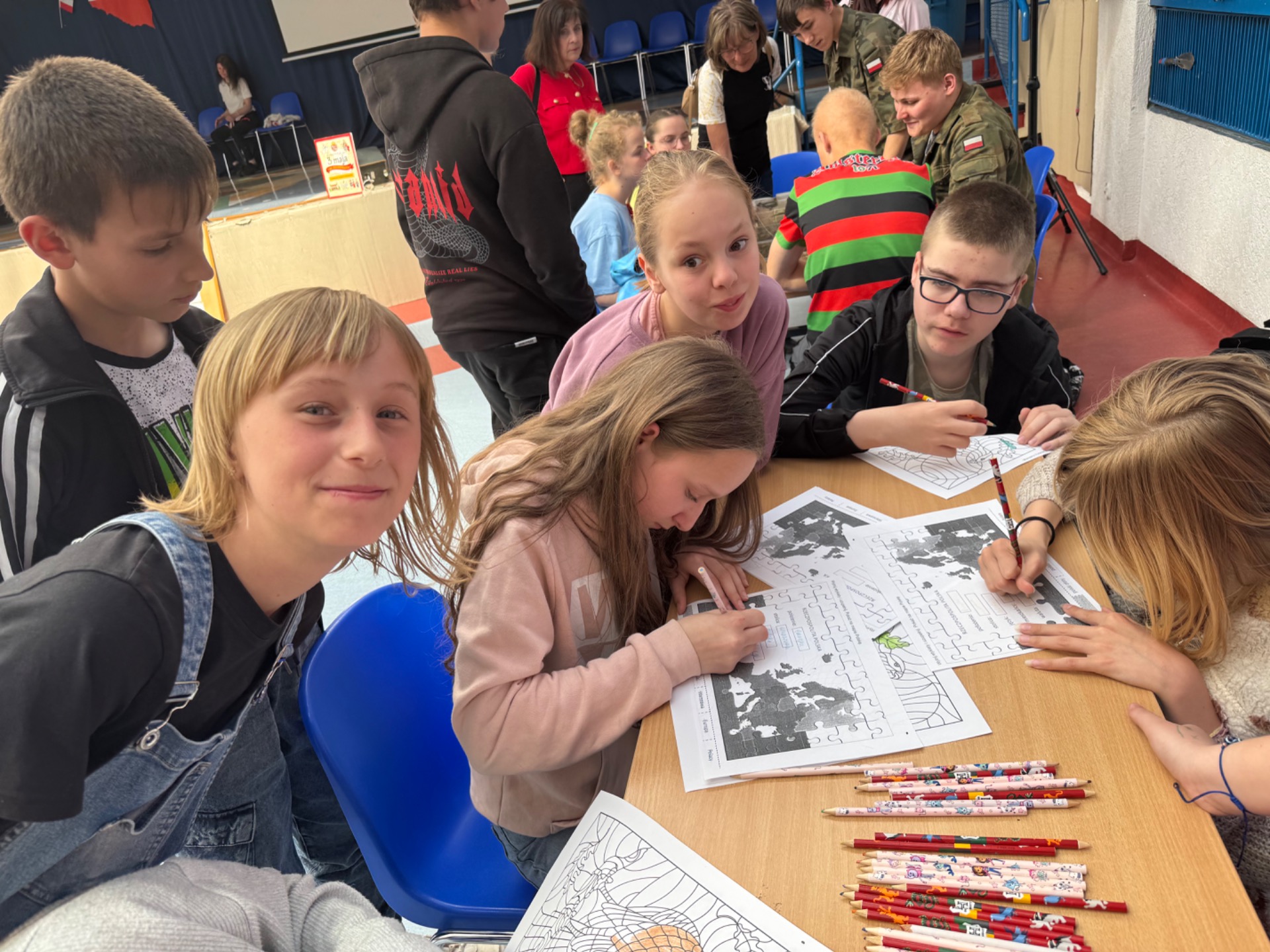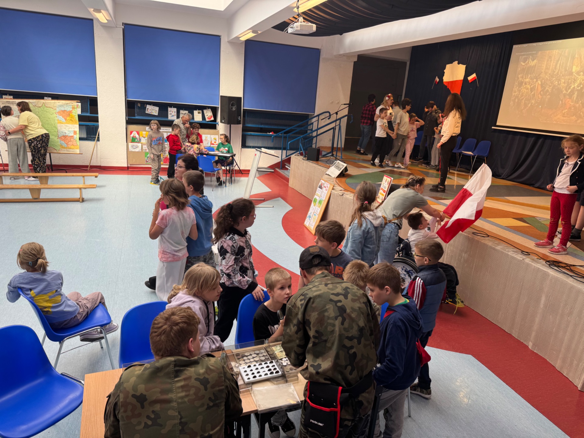 Z okazji zbliżającej się rocznicy Konstytucji 3 Maja nasi uczniowie wzięli udział w ciekawych warsztatach historycznych przygotowanych przez pana Wojciecha oraz panią Jolę. Na kilku stanowiskach czekały do wykonania różne, interesujące zadania, które przybliżyły nam historię. Musieliśmy zaznaczyć dawne ziemie Rzeczypospolitej, zapoznać się z tekstem Konstytucji, złożyć z części portret króla S. A. Poniatowskiego, a także były różne geograficzne i historyczne zagadki. Duża atrakcją było stanowisko naszego ucznia, Patryka, którego hobby jest wyszukiwanie wykrywaczem metalu różnych skarbów. To była wyjątkowa lekcja :) Rozstrzygnięto także konkurs plastyczny z okazji 1000-lecia koronacji Bolesława Chrobrego