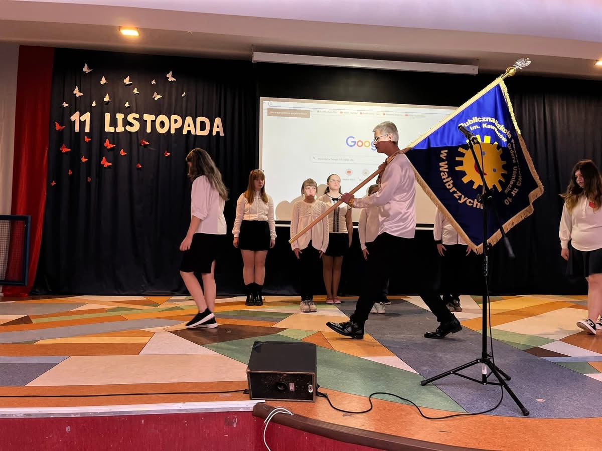 Apel przygotował pan Wojtek – nauczyciel historii, który przypomniał nam najważniejsze wydarzenia z dziejów Polski oraz znaczenie tego wyjątkowego dnia. Wielkie brawa dla części zespołu „ Niezwykli”, dla klasy 3a, których przygotowała pani Bogna, oraz Inwokacja Pana Tadeusza, którą pięknie przygotował Maciej z 4 b.