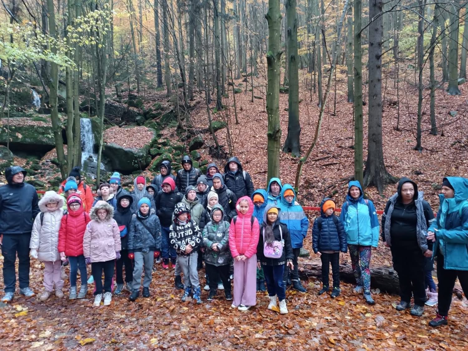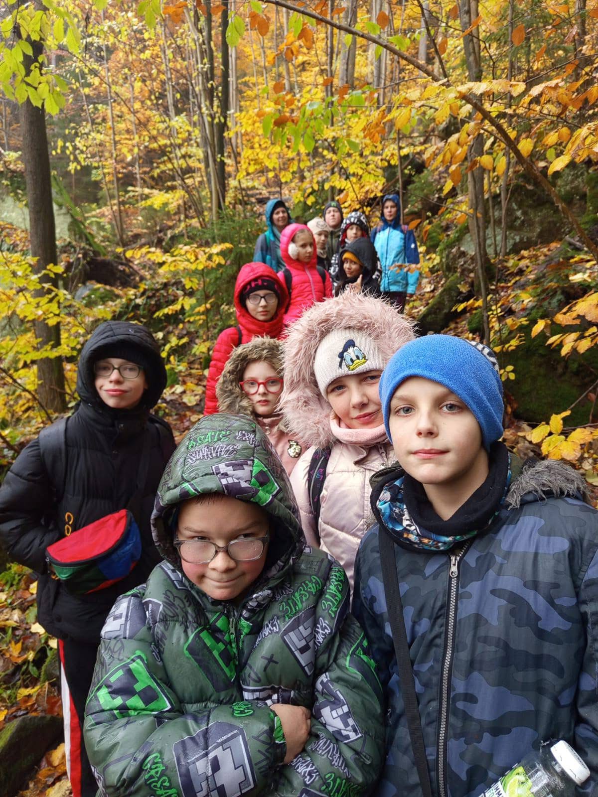 Pierwsza grupa wyruszyła malowniczym szlakiem przez Wodospad Pośny w kierunku Karłowa i dalej na Szczeliniec Wielki, podziwiając po drodze niezwykłe formacje skalne i jesienne barwy lasów.