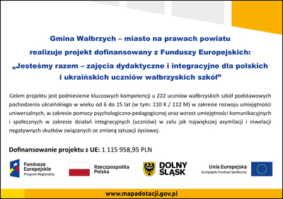 Jesteśmy razem – zajęcia dydaktyczne i integracyjne dla polskich i ukraińskich uczniów wałbrzyskich szkół